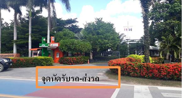 ตัวอย่าง จุดบริการรับ-ส่งรถ วิทยาลัยเทคโนโลยีทางทะเลแห่งเอเชียบริเวณหน้าวิทยาลัยแถวบริเวณตู้ ATM